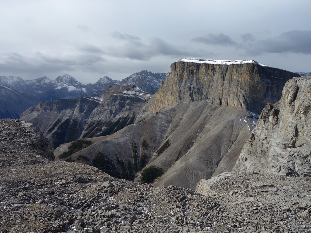 Above: The summit of Mt. Remus, Banded Peak and Mt. Cornwall from the northwest ridge of Mt. Remus