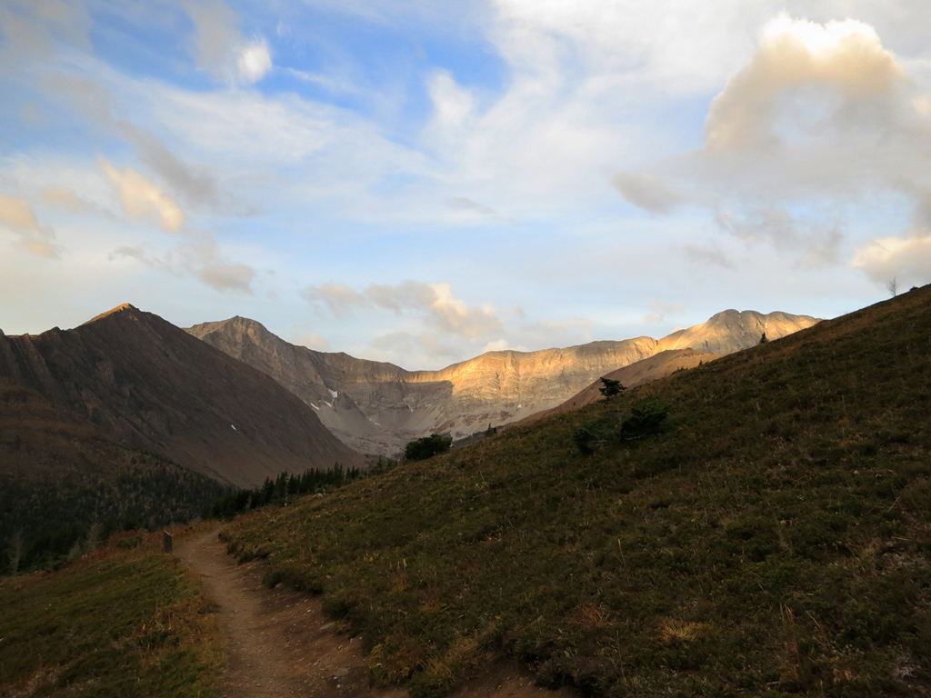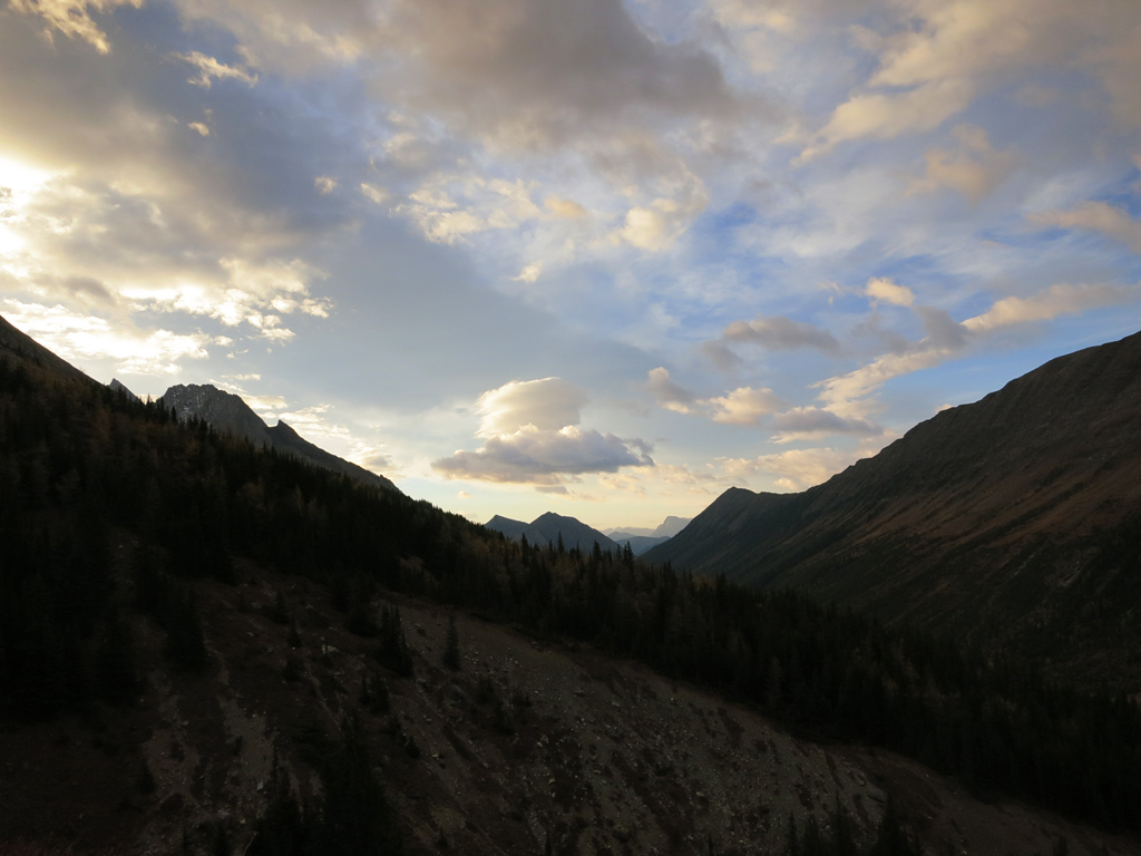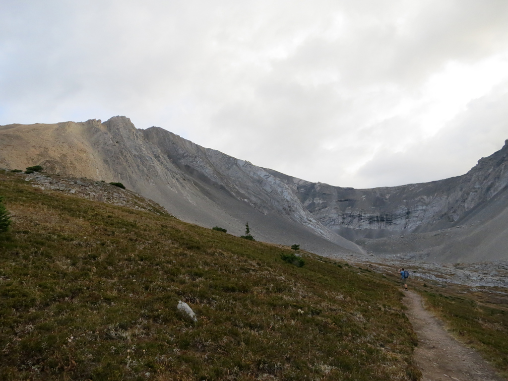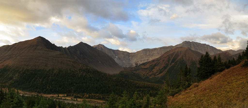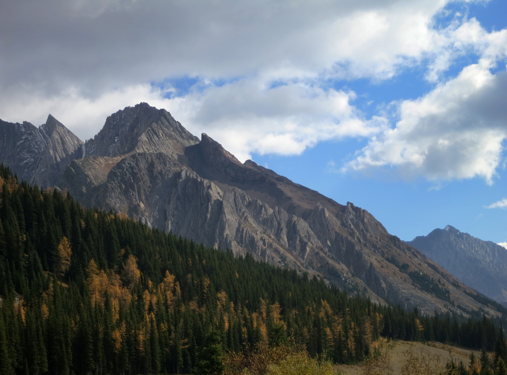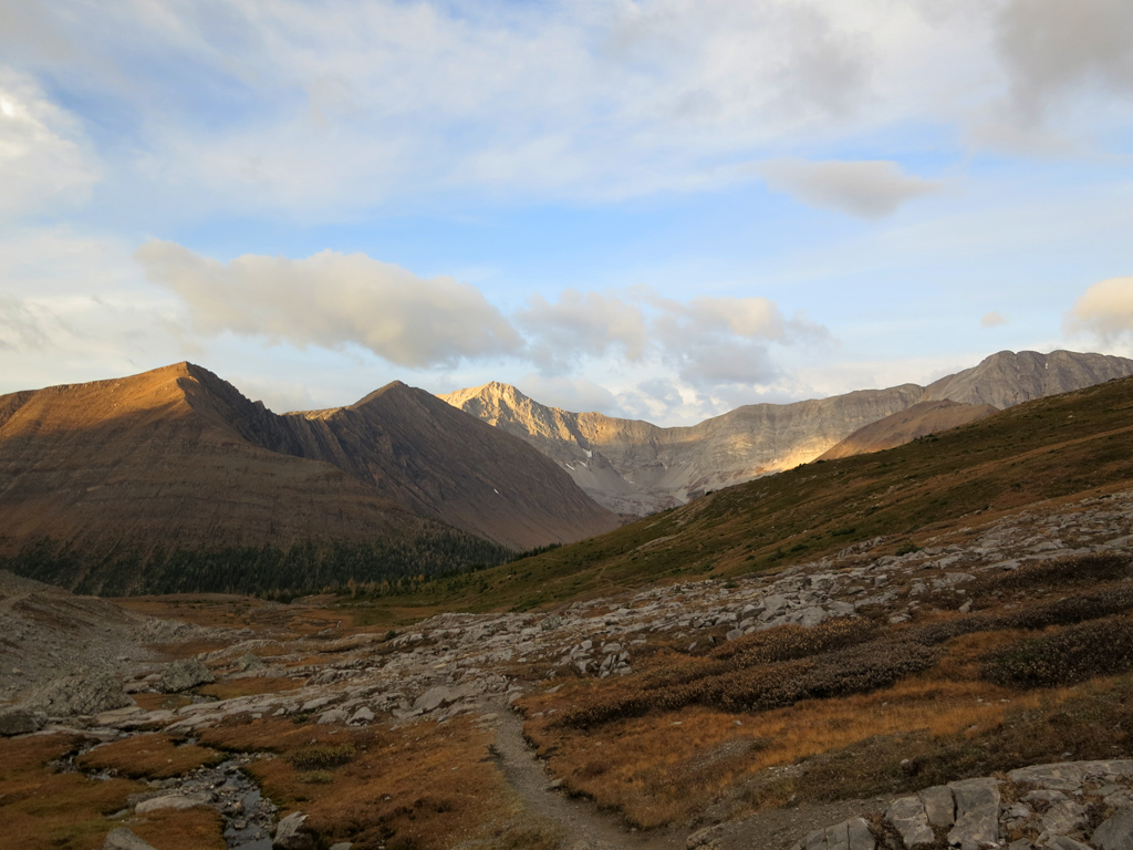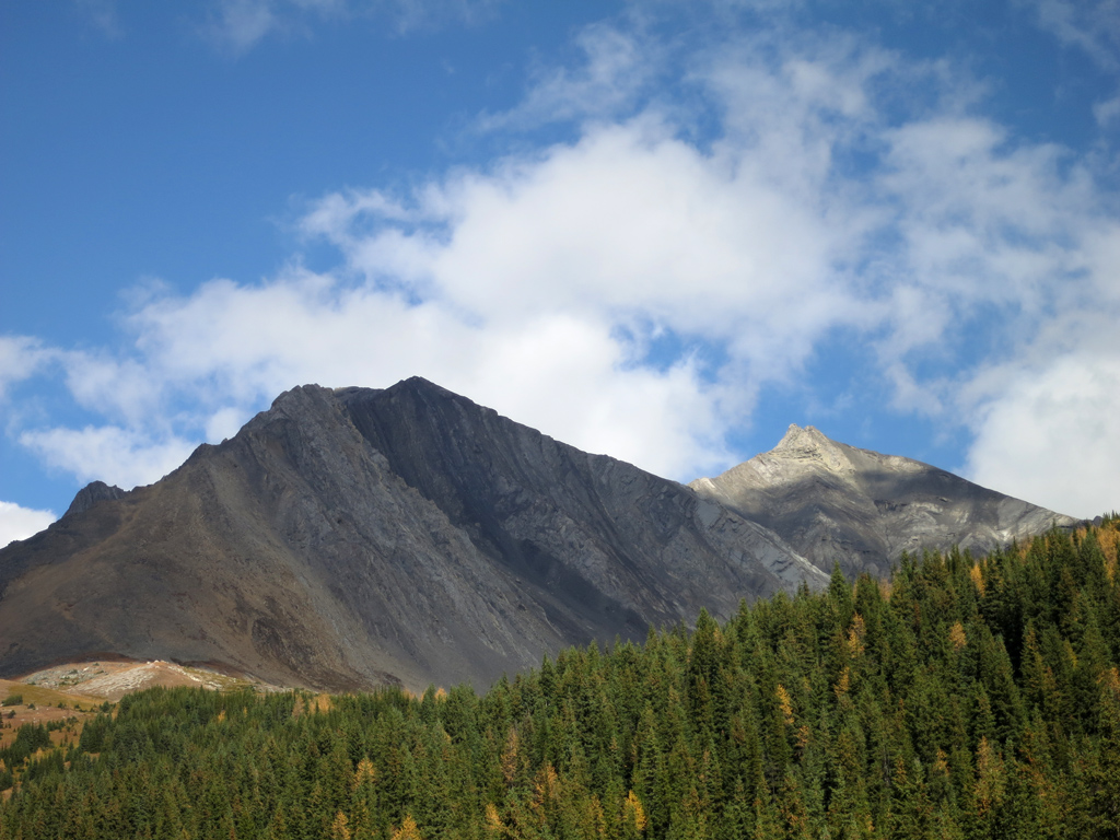 An ascent of Mt. Rae begins from the Pocaterra Day Use parking area near the base of Pocaterra Ridge on Highway 40, roughly 17 km south of the seasonal closure gates and the turn-off to Peter Lougheed Provincial Park. This parking lot tends to fill up very quickly during larch season, so if you're headed here in September, come early. You'll find the trailhead to Ptarmigan Cirque after crossing the road and heading half a kilometre north along it.