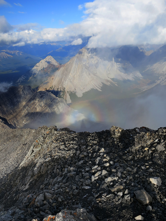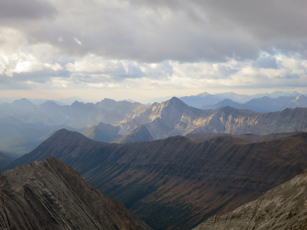 This was my second attempt on Mt. Rae as an earlier visit to the mountain with Steven saw me too injured to venture far from the vehicle (blisters from our Skoki marathon epic). Although he reached the summit, a large forest fire to the west (resulting in a bingo hall-like summit experience) ensured that we both had a less than stellar day.
