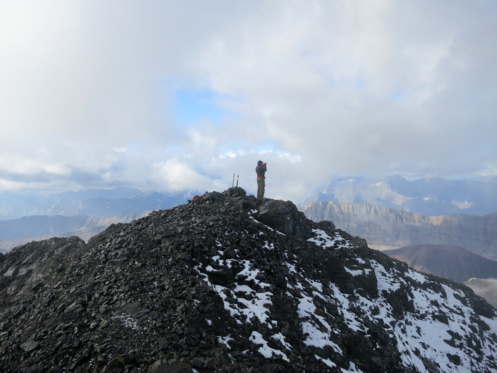 In our first trip together Eric (of Summitsearch.org) and I would get snowed on during our arrival at the summit, but would fight off the cold long enough to get some dramatic photos as the clouds began to clear.