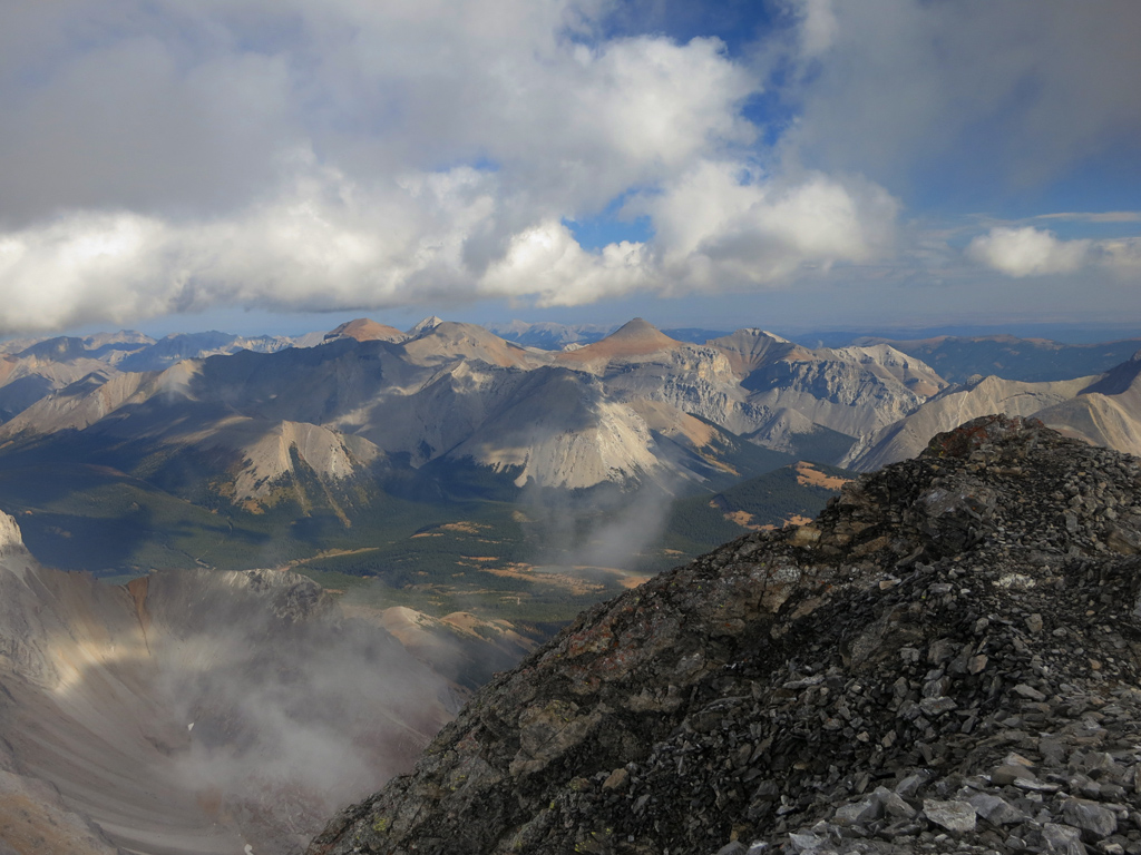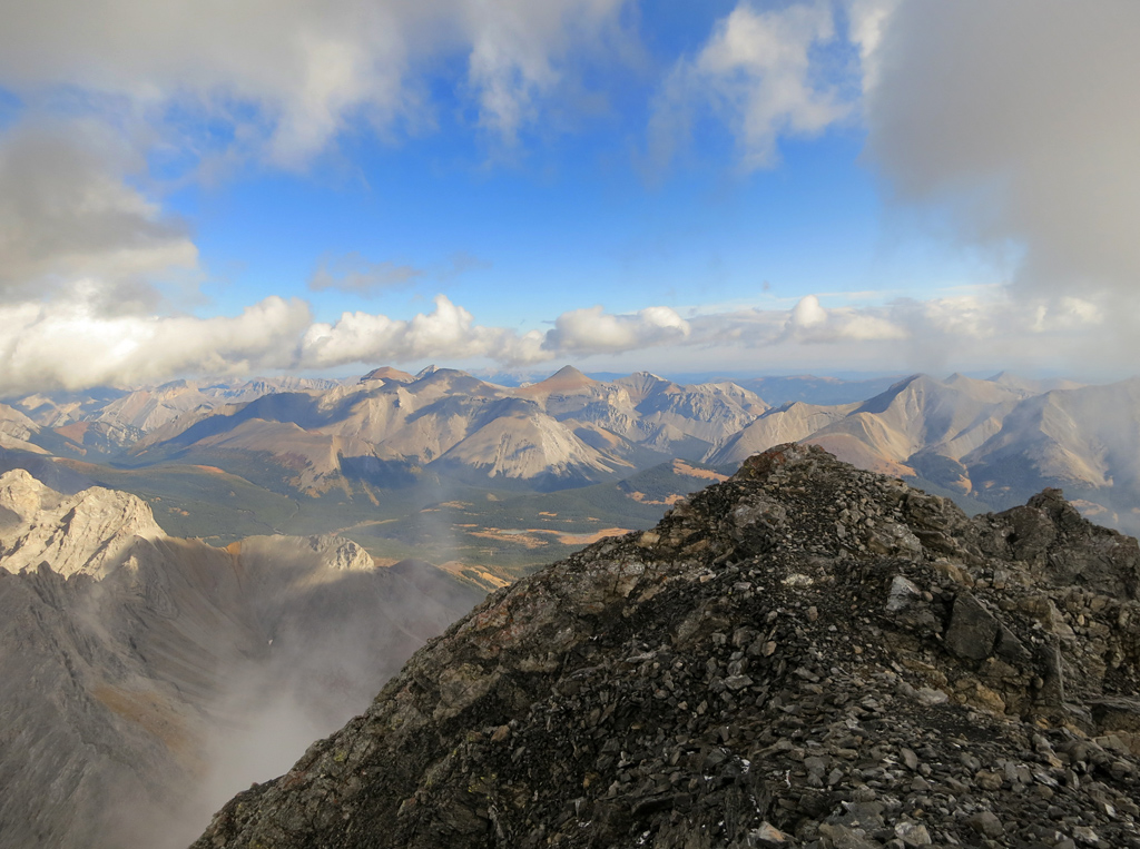 Mt. Rae is the tallest mountain in Highwood Pass and one of the most accessible 10,000 footers in the Canadian Rockies. A moderately difficult scramble beginning from the popular Ptarmigan Cirque trail, an ascent of Mt. Rae will afford one with decent views of the Highwood Pass area, the front ranges to the east, and glimpses of the Kananaskis lakes area to the west.