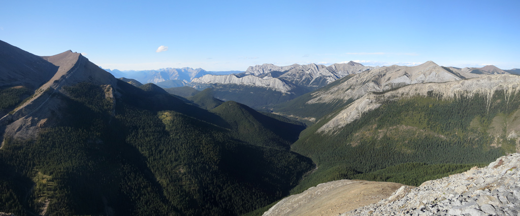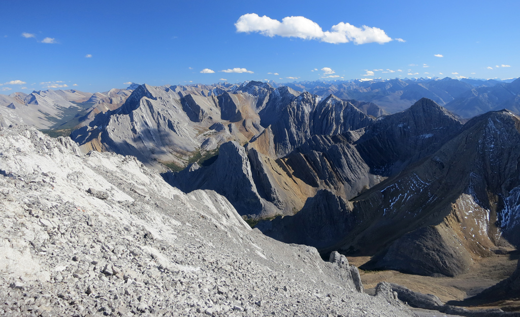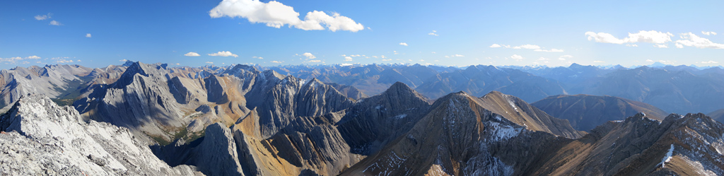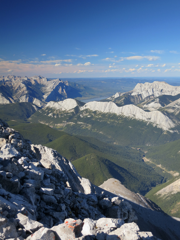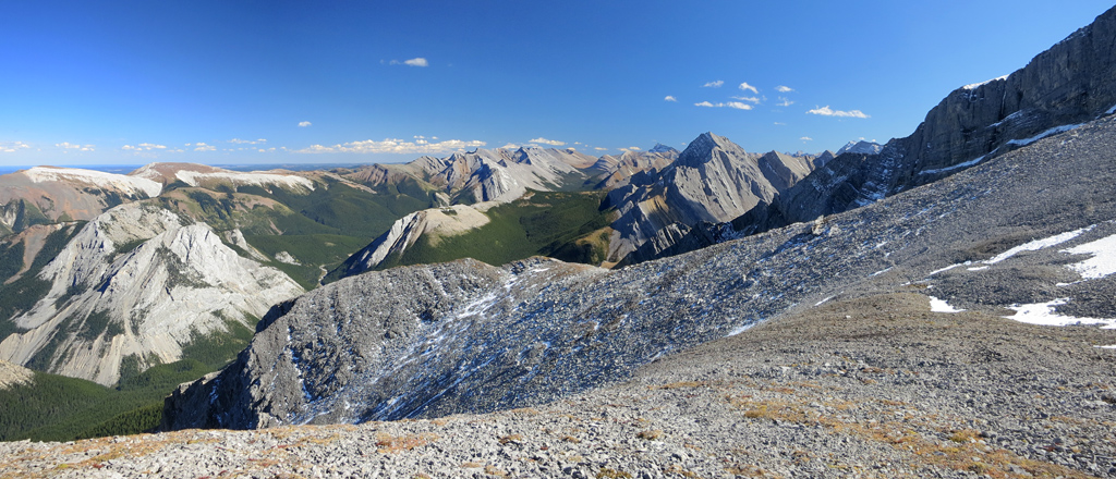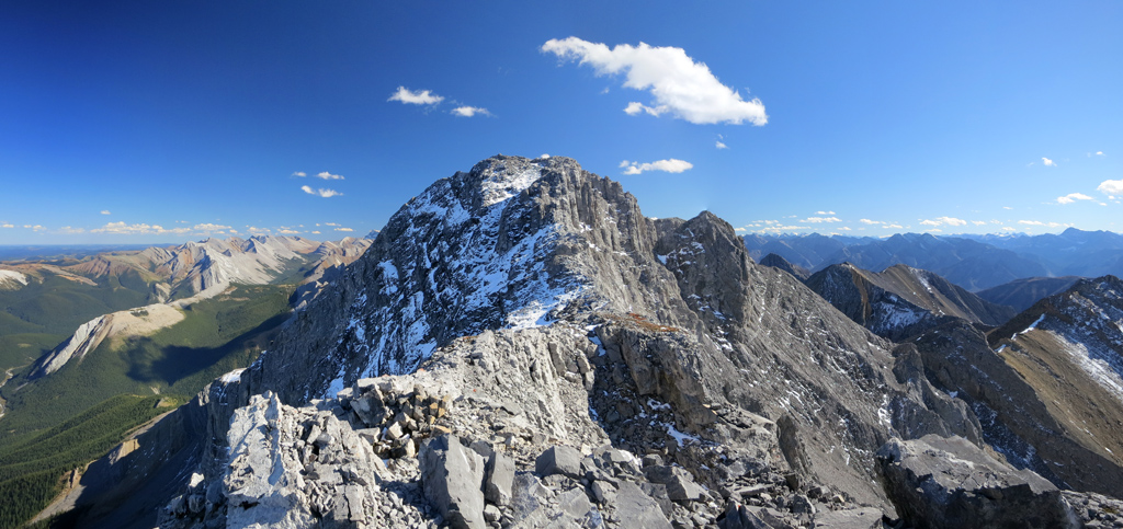 Located to the southwest of the Miette Hot Springs, Utopia Mountain is a moderately difficult scramble that offers excellent views, not only of Jasper's front ranges, but a veritable “sea of peaks” to its south as you approach the summit. Requiring a significant amount of creek bed travel, this is a trip best saved for the late summer/early fall when water levels are at their lowest.