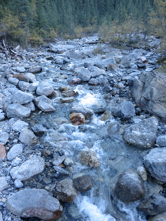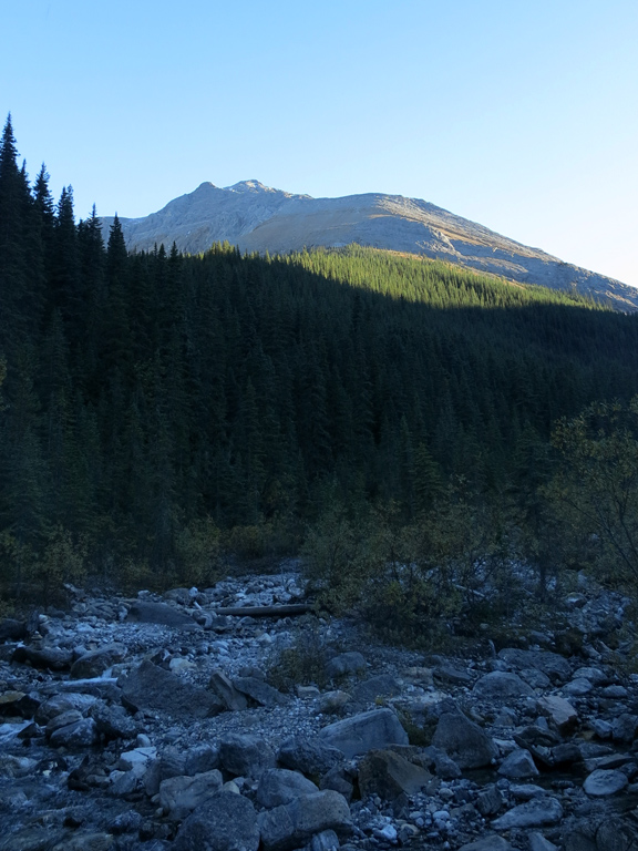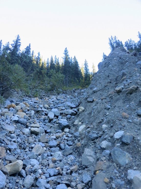 For the next few kilometres you will be following fragments of trail along the southeasterly side of the creek as you follow it on its southwesterly course. What you'll be looking for is a trail heading up the ridge to the left shortly before you arrive at a large rocky drainage descending from the same ridge. I'd like to tell you more about that trail and how to identify it, but I missed it completely during my ascent and couldn't find it on the return either. The good news is that I found two alternative routes that work.